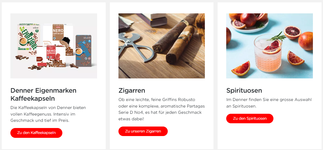Nebst den ganzen Lebensmitteln verfügt die Denner AG ein grosses Sortiment aus verschiedenen Kategorien: