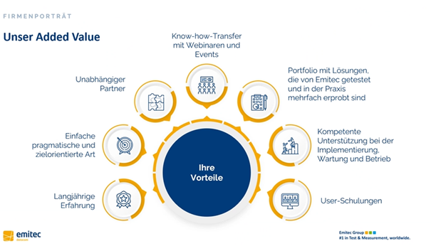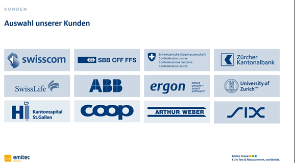Die Emitec Datacom ist spezialisiert auf Test- und Messlösungen für IT und Security und bietet ihren Kunden Lösungen in den Bereichen IT-Monitoring, Testing & Security an, um diesen eine optimale IT-Performance sowie Sicherheit garantieren zu können. Ihre umfassende Leistung reicht von der gezielten Beratung, der Analyse, der Lösungs-Evaluation, der Integration sowie der Schulung ihrer Kunden. Sie arbeiten dazu mit weltweit führenden Herstellern zusammen, um die Bedürfnisse ihrer Kunden abzudecken und fungieren dabei als unabhängiger Partner. Ganz nach dem Leitsatz: «Ihr Erfolg ist unsere Motivation - Monitoren, Optimieren und Testen ist unsere Leidenschaft.» sind sie zu einem führenden Anbieter in der Schweiz avanciert und bestechen durch ihre langjährige Erfahrung und spezifischen Fachkompetenz.