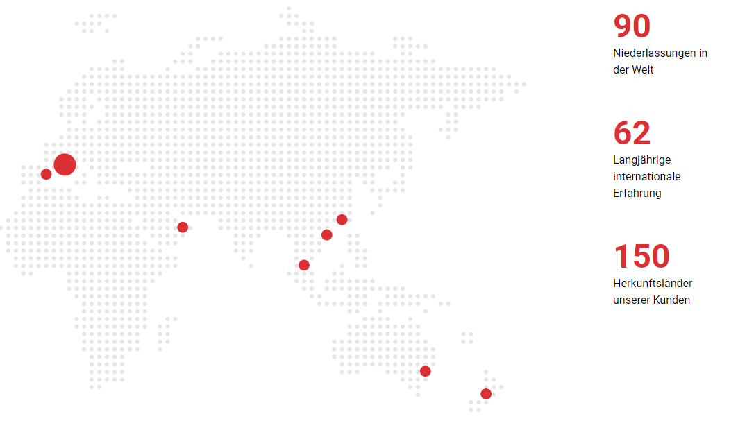 Durch unsere lokale Präsenz und unsere Vermittler sind wir in der Lage, unsere Dienstleistungen in mehr als 90 Ländern der Welt anzubieten.