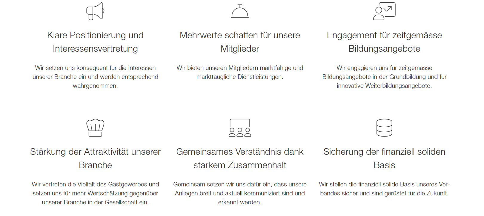 GastroSuisse ist der Verband für Hotellerie und Restauration in der Schweiz. Wir vertreten die Interessen des Gastgewerbes, fördern das Image der Branche, engagieren uns für Berufsbildung und Qualität. Mit zukunftsweisenden Produkten und Dienstleistungen unterstützen wir die Branche in ihrer Entwicklung.