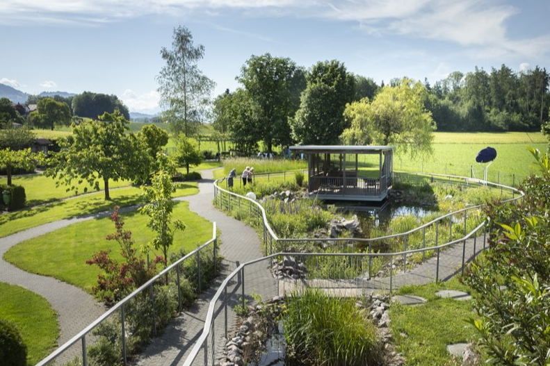 Unsere wohlwollende und wertschätzende Haltung drückt sich auch in der Architektur aus. Grosszügig gestaltete und helle Räume, offene Türen, ein grosser Garten und Kunst in den Innen- und Aussenräumen bilden das Umfeld, in dem sich Menschen mit Demenz wohlfühlen können. Dieses Umfeld fördert Lebendigkeit, Austausch und Begegnungen von Mensch zu Mensch.