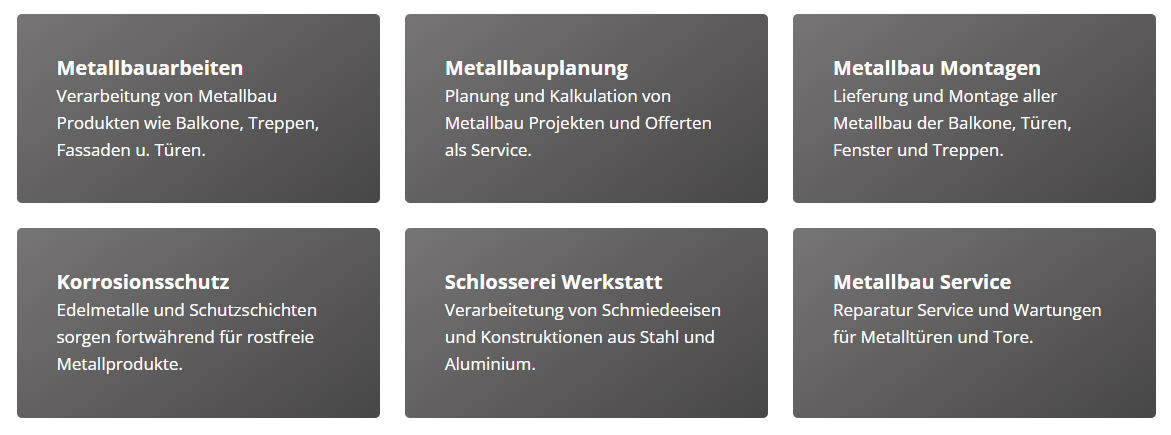 Metallbauplanung und Herstellung von Metallbauprodukten mit Metallen und Glas, gefärbt mittels Pulverbeschichtung dazu die Montage aller Produkte und ganzer Verglasungen. Die Metallbau Produkte sind hergestellt aus Stahl, Edelmetallen, Aluminium sowie aus Glas-, Stein- und Holz- Verbindungen passend zu jedem Design. Metall- und Stahlbauer, bauen und liefern Metallbauarbeiten und reparieren Metallbauprodukte.