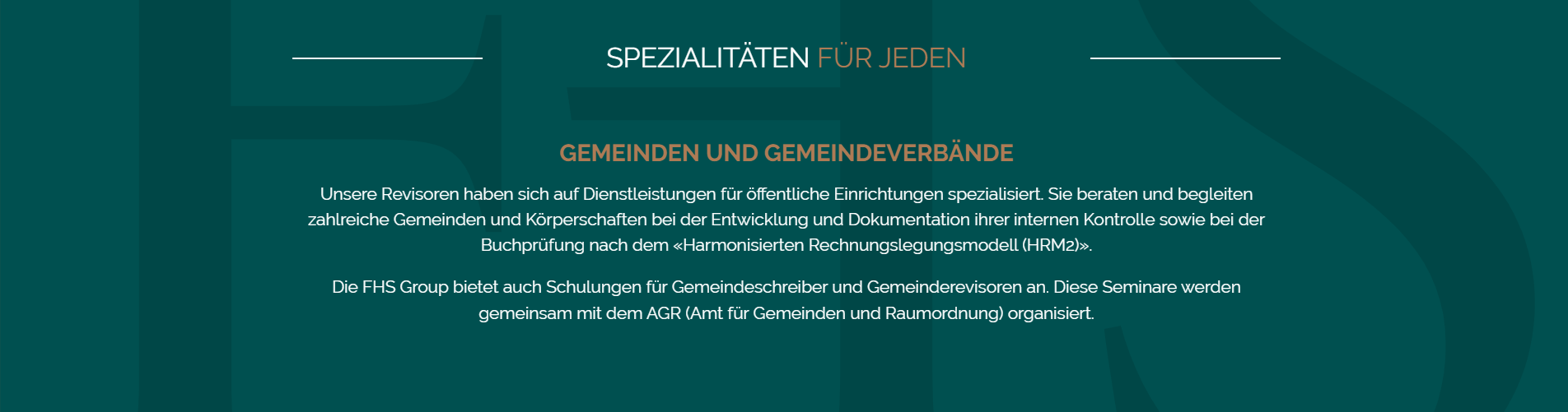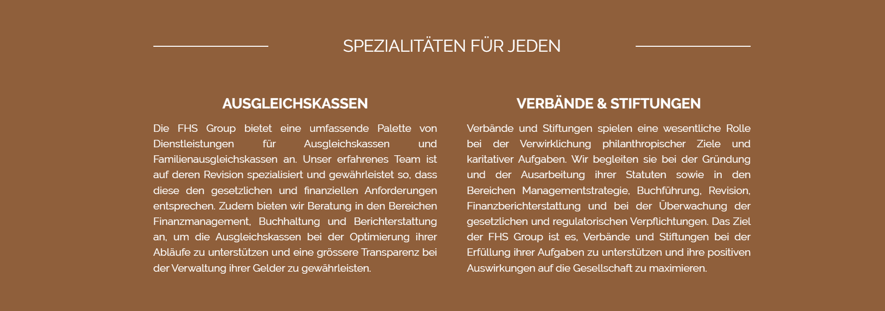 Unsere zweisprachigen Teams zugelassener Experten an den beiden Standorten Biel und La Chaux-de-Fonds sind im gesamten Jura und im Mittelland tätig. Die Fiduciaire Horlogère Suisse Group ist auf Dienstleistungen für kleine und mittelständische Unternehmen, freie Berufe, Gemeinden, Stiftungen und Privatpersonen spezialisiert. Zu unseren Fachbereichen gehört auch die Revision von AHV-Ausgleichskassen und Familienausgleichskassen. Mit unseren drei Unternehmungen Fiduciaire Horlogère Suisse, Fiduciaire Soresa und FHS Fidufisc bieten wir Ihnen hochwertige Lösungen nach Mass an.