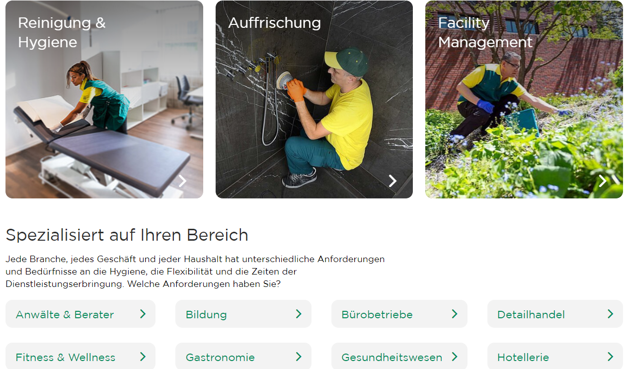 Als Unternehmen und als Privatperson dürfen Sie von uns Top-Leistungen erwarten – in Zürich in der einfachen Unterhaltsreinigung und in der Schweiz in der Gebäuderreinigung, der Spezialreinigung, der hochspezialisierten Steinverdelelung und im professionellen Facility Management.