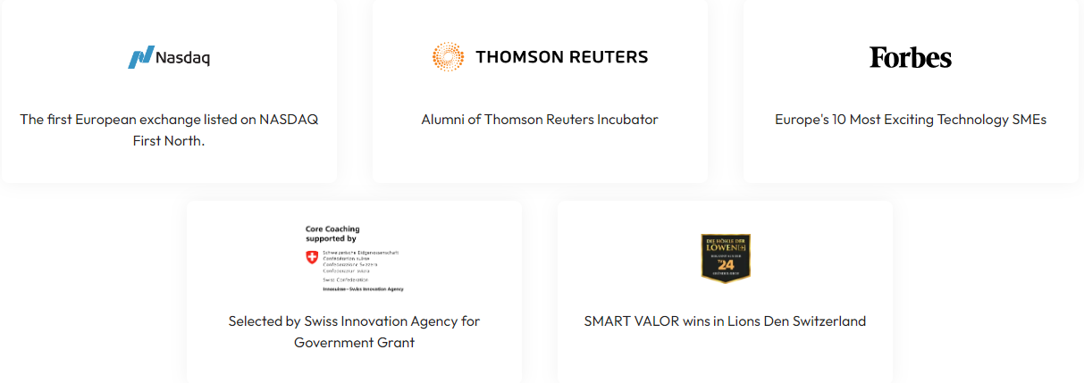 SMART VALOR was founded in 2017 in Switzerland, one of the leading hubs for blockchain technology. We became the first authorized digital exchange in the region. Forbes nominated SMART VALOR as top 10 technology SME in Europe and Swiss Government selected us for Swiss innovation grand.