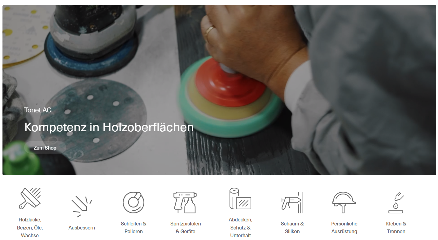 Die Holzoberfläche gehört seit fast 60 Jahren zum Kerngeschäft der Tonet AG. Seit der Gründung war es das Ziel, den Kunden zu ermöglichen, Möbeloberflächen schnell, fachgerecht und kostenbewusst instand zu stellen. Dabei wurde vor allem auf Füllstoffe und Sprühdosen gesetzt und eine Marktlücke entdeckt. Die konsequente Sortimentsergänzung, die grosse Kundennähe und die breite Abdeckung der Marktbedürfnisse haben es ermöglicht, dass die Tonet AG seit Jahren die führende Schweizer Holzoberflächen-Spezialistin ist. Die Tonet AG bietet alles, was es zur Herstellung und für die Reparatur zeitgemässer Oberflächen aus unterschiedlichsten Materialien benötigt.
