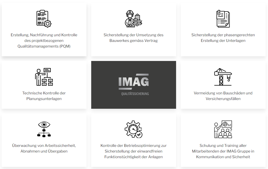 Bauschäden oder Versicherungsfälle behindern das Bauen, sind teuer und führen zu Bauverzögerungen. Mit der Erstellung eines projektbezogenen Qualitätsprüfplanes (PQM) sowie dessen Kontrolle und Nachführung garantieren wir die Vermeidung von Planungs- und Ausführungsfehlern und sorgen so für eine grösstmögliche Sicherheit. Unsere unabhängige Qualitätssicherung stellt sicher, dass Sie genau das bekommen, was Sie bestellen – in der gewünschten Qualität, zum definierten Zeitpunkt und im Rahmen Ihres eingeplanten Budgets.