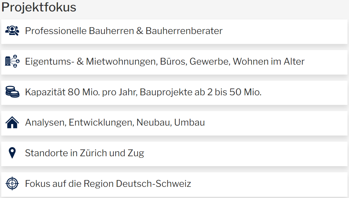 Mit unserem professionellen Baumanagement realisieren wir Ihre Bauprojekte ergebnisorientiert und kompetent. Dabei unterstützen wir Sie als Dienstleister in allen Belangen rund um Ihre Immobilienprojekte. Wir koordinieren und steuern für Sie den gesamten Prozess – von der ersten Bedürfnisanalyse bis zum fertiggestellten Projekt –und betreuen Sie auch während der Garantiezeit. Unsere speziell ausgebildeten Mitarbeitenden führen in Ihrem Auftrag engagiert alle Projektbeteiligten und kommunizieren wirkungsvoll mit allen Anspruchsgruppen. Im Fokus steht dabei stets, Ihren Aufwand auf ein Minimum zu reduzieren und gleichzeitig Ihre Bedürfnisse bestmöglich zu erfüllen.