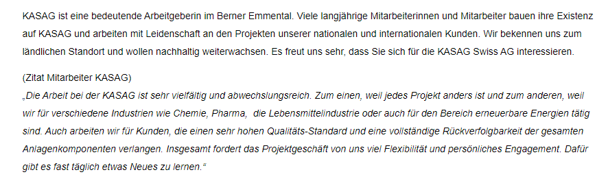 KASAG ist ein mittelgrosses Industrieunternehmen in Langnau im schweizerischen Emmental. Seit 1929 bietet die Firma in der Region Arbeitsplätze für qualifizierte Fachleute an. In diesem landschaftlich reizvollen Hügelland im Kanton Bern wird nicht nur der weltbekannte Käse mit den Löchern produziert, hier sind auch zahlreiche innovative Firmen tätig, die global einen ausgezeichneten Ruf geniessen. KASAG ist eine von ihnen.