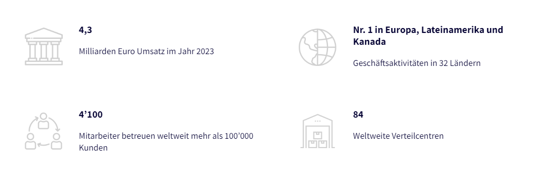 Der weltweit jährliche Umsatz beträgt rund 4,3 Milliarden Euro. Die Antalis Gruppe hat ihren Sitz im Grossraum Paris und beschäftigt 4'100 Mitarbeitende, die 100'000 Kunden betreuen. Die 84 Verteilzentren haben sich dem umweltbewussten Handeln verschrieben und bieten hochwertige und massgeschneiderte Fachkompetenz sowie individuelle Dienstleistungen an.