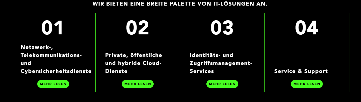 - Die Lösungspalette erstreckt sich über den gesamten Service LifeCycle. Beginnend bei Beratung und Analyse über eine professionelle Projektleitung bis hin zum Betrieb und Support.
