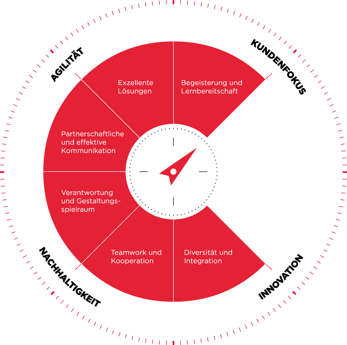 - Agil: Im Dialog mit unseren Kunden stellen wir uns in Projekten schnell skalierbar und flexibel auf die individuellen Anforderungen unserer Kunden an.
