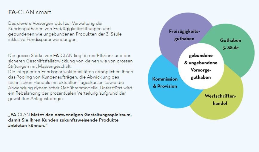 CLANINFORMATIK ist eine Aktiengesellschaft, die am 1. Januar 1997 gegründet wurde. Seit dem erste Tag Seit dem ersten Tag steht unser etabliertes Softwarehaus für innovative Lösungen rund um das Thema berufliche und private Vorsorge. Unser Wirken basiert auf benutzerfreundliche und intuitive Anwendungen, einem hochstehenden persönlichen Kundenservice sowie auf langjährige, erfolgreiche Kundenbeziehungen.