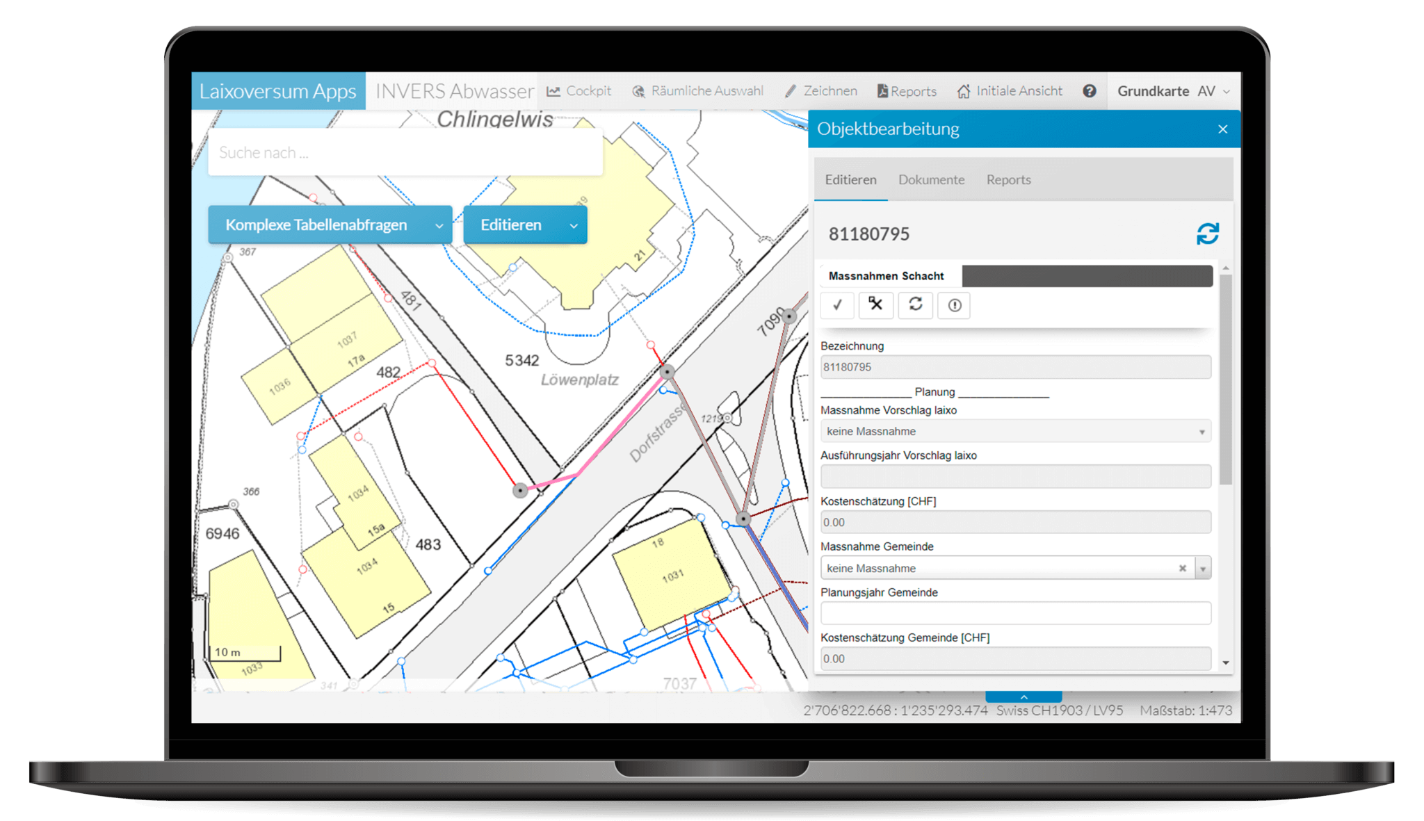 Das Laixoversum ist unsere GIS-basierte Plattform, welche Kunden und Partnern alles bietet, was sie für die Pflege und Nutzung der Infrastruktur brauchen. Die Plattform bietet unterschiedliche Anwendungen, welche es ermöglichen, die Daten der Infrastruktur zielgerecht zu nutzen. Mit der empfohlenen zentralen Datenhaltung greifen alle Beteiligten jederzeit auf den aktuellen Zustand des digitalen Zwillings zu.