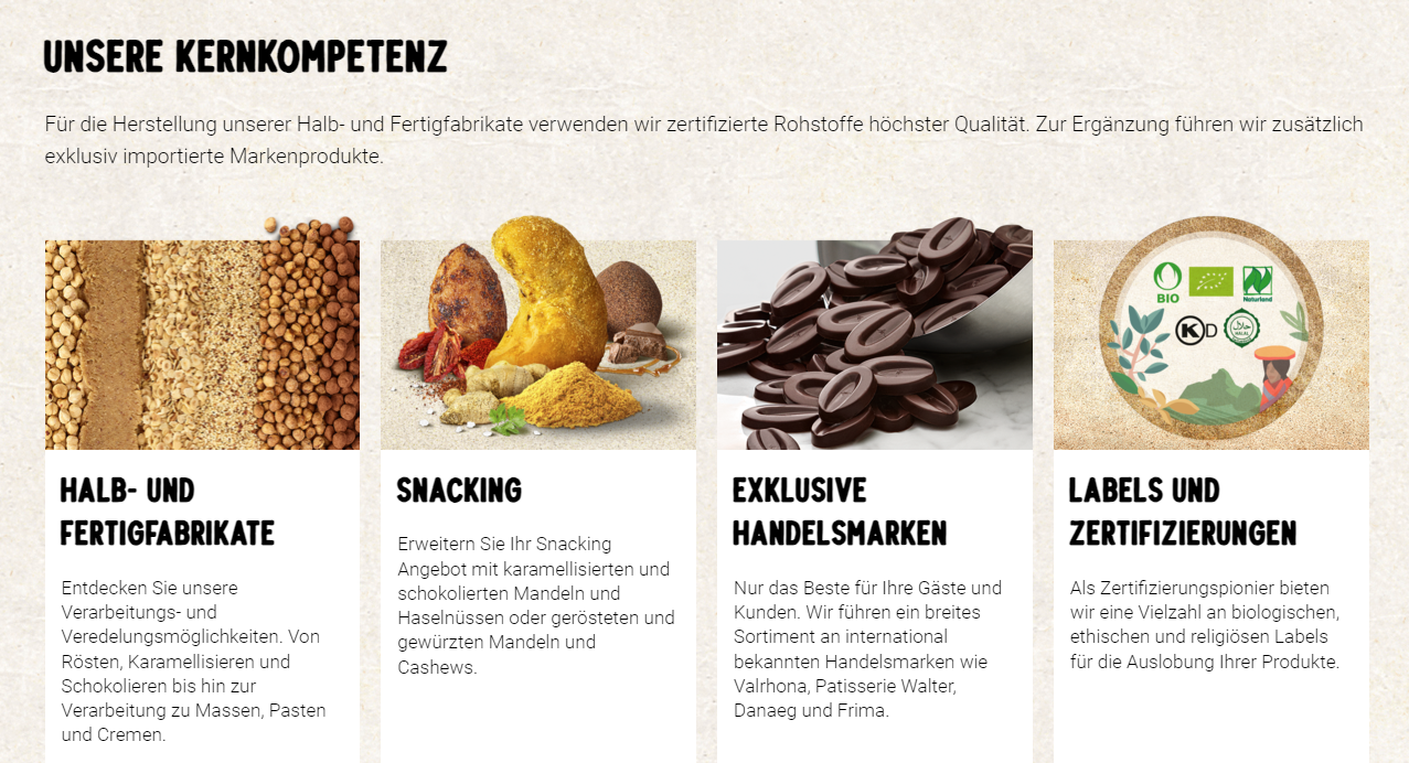 Die Patiswiss ist spezialisiert auf die Verarbeitung und Veredelung von Nüssen und Kernen zu Halb- und Fertigfabrikaten und bietet zudem ein breites Sortiment an international bekannten Handelsmarken.