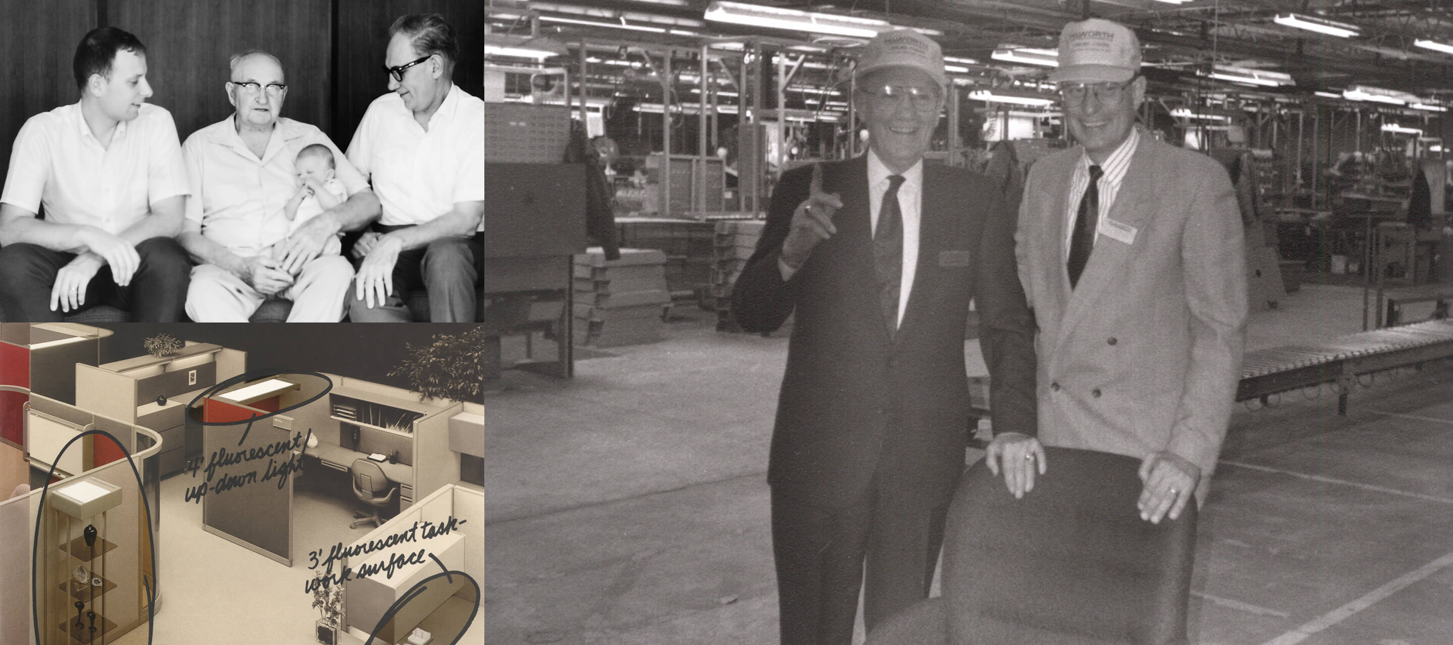 40er Jahre – 1948 wird dem Lehrer für künstlerische und industrielle Gestaltung, G.W. Haworth, seine heimische Werkstatt, in der er Holzspielzeug herstellt, zu klein und er beginnt mit dem Bau der ersten Produktionsstätte in Holland, Michigan, USA. Mit einem Darlehen von 10.000 USD aus den Ersparnissen seiner Eltern gründet G.W. Modern Products. Zu den ersten Holzprodukten des Unternehmens zählen Krawattenhalter und Schuhregale.