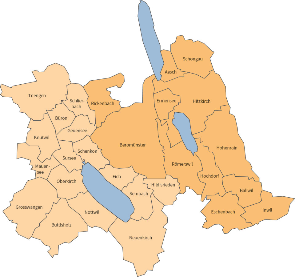 Aesch, Ballwil, Beromünster, Büron, Buttisholz, Eich, Ermensee, Eschenbach, Geuensee, Grosswangen, Hildisrieden, Hitzkirch, Hochdorf, Hohenrain, Inwil, Knutwil, Mauensee, Neuenkirch, Nottwil, Oberkirch, Rickenbach, Römerswil, Schenkon, Schlierbach, Schongau, Sempach, Sursee, Triengen
