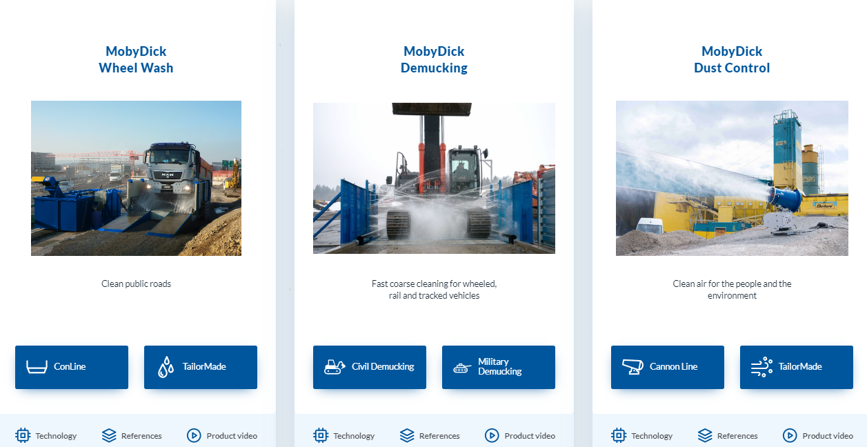 Die Marke MobyDick steht für ein sehr gutes Preis-Leistungsverhältnis und Marktführerschaft in den Bereichen Reifenwaschanlagen, Staubbindung und Demucking!