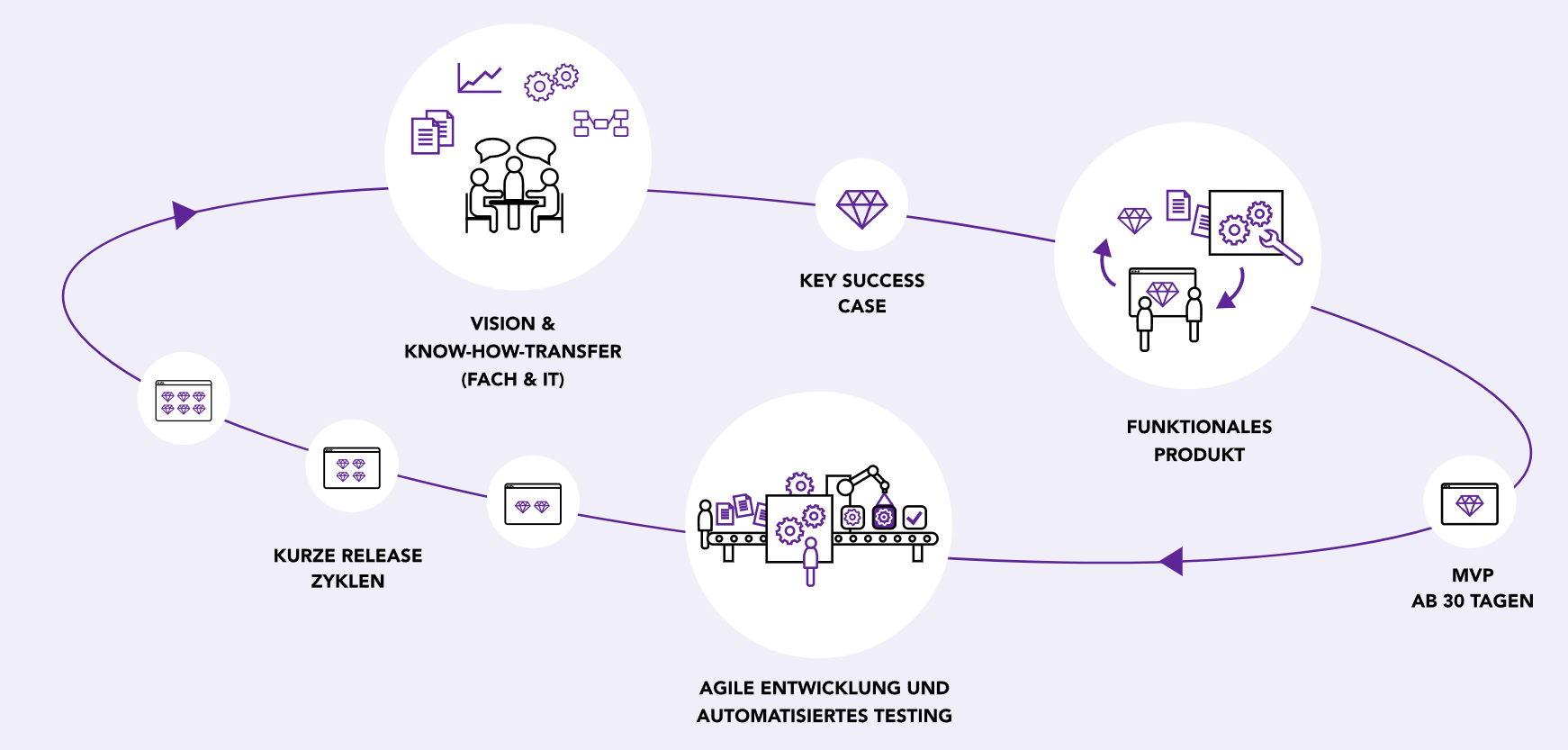 Wir helfen Unternehmen ihre Businessideen in digitale Produkte umzuwandeln. Mit unserer technischen Kompetenz, innovativer Methodik und automatisierten Tools bringen wir Sie Schritt für Schritt, sicher und in kürzester Zeit zum anvisierten Ziel und darüber hinaus.