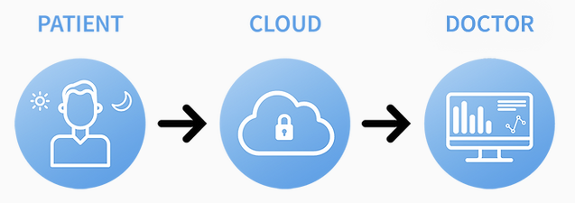 Das SIVA Wearable Device wird vom Patienten rund um die Uhr verwendet. Er trägt es tagsüber auf der Brust und behält es nachts neben dem Bett. Husten- und Kontextdaten des Patienten werden kontinuierlich an den Arzt/Studienleiter übertragen.